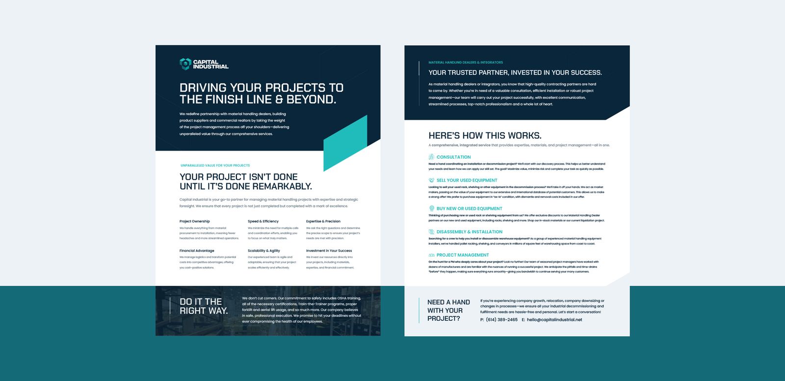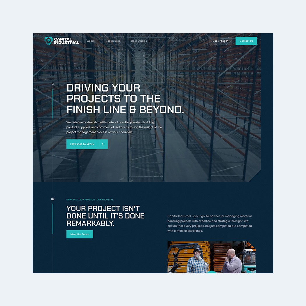 Capital Industrial is a material handling partner that helps businesses plan and execute complex warehouse projects. I designed a visual identity inspired by the structure of rack systems and translated that language into a custom website built to showcase their expertise and speak directly to a B2B audience.